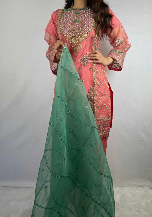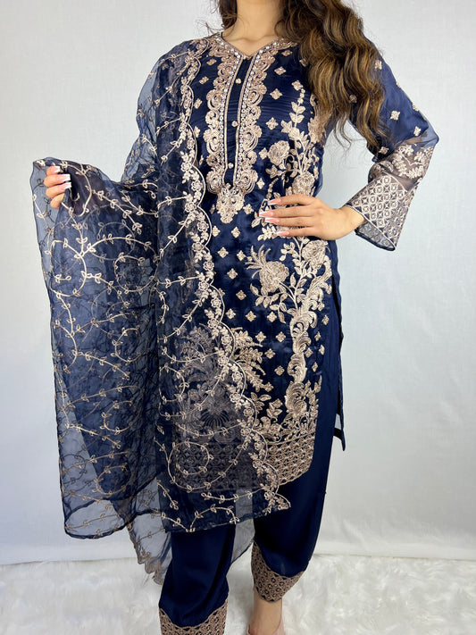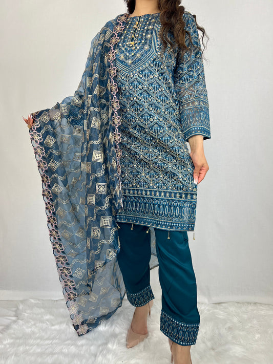 Turquoise Blue Salwar Kameez With Floral Dupatta