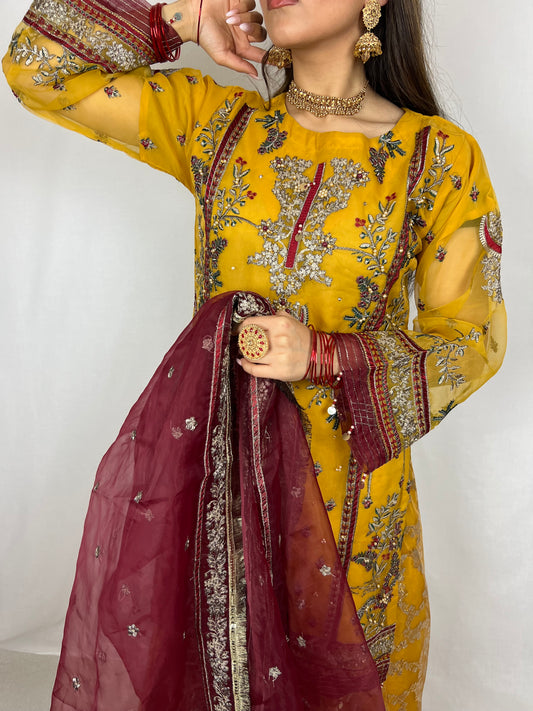 Yellow & Red Sharara Suit & Palazzo pants