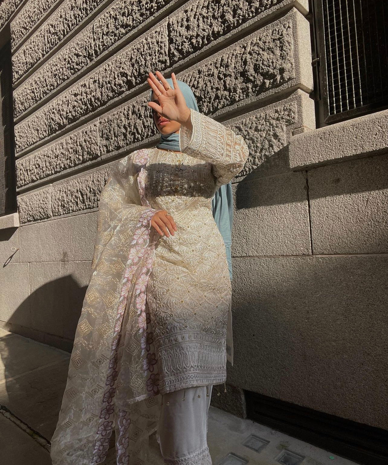 Details- Embroidery, salwar, floral dupatta