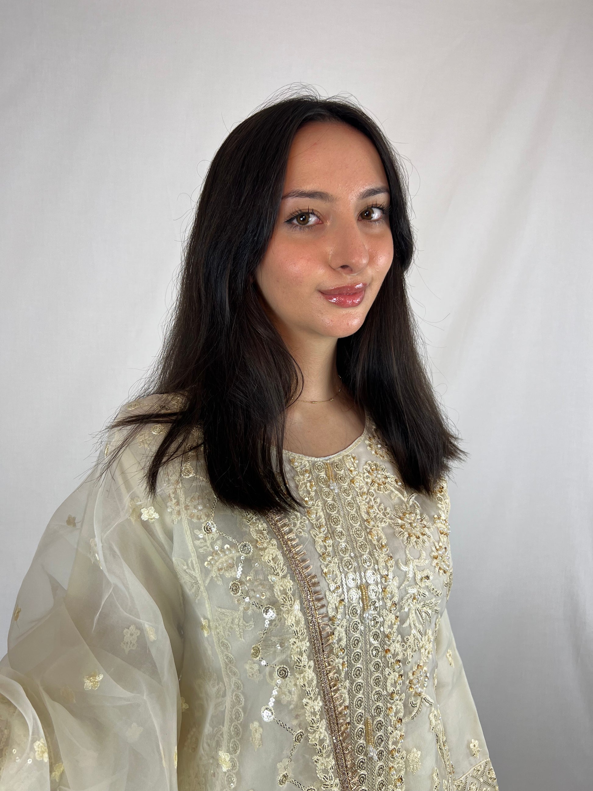 Sparkle in this gorgeous Sharara from our Husna Collection, complete with a stunning embroidered kameez, dazzling Sharara pants and an embroidered dupatta to create all the flair.
