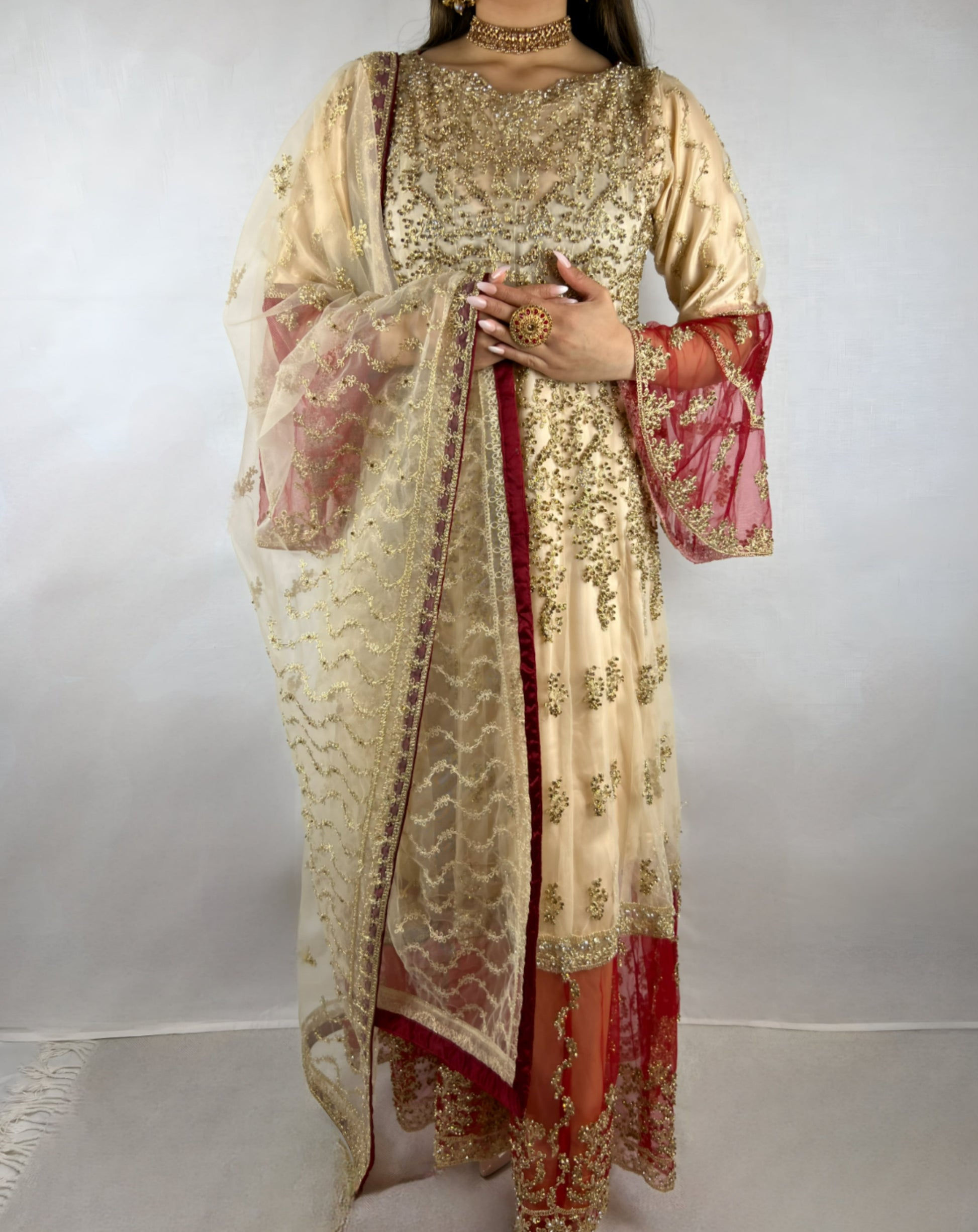 Cream & Red Georgette Anarkali Dress