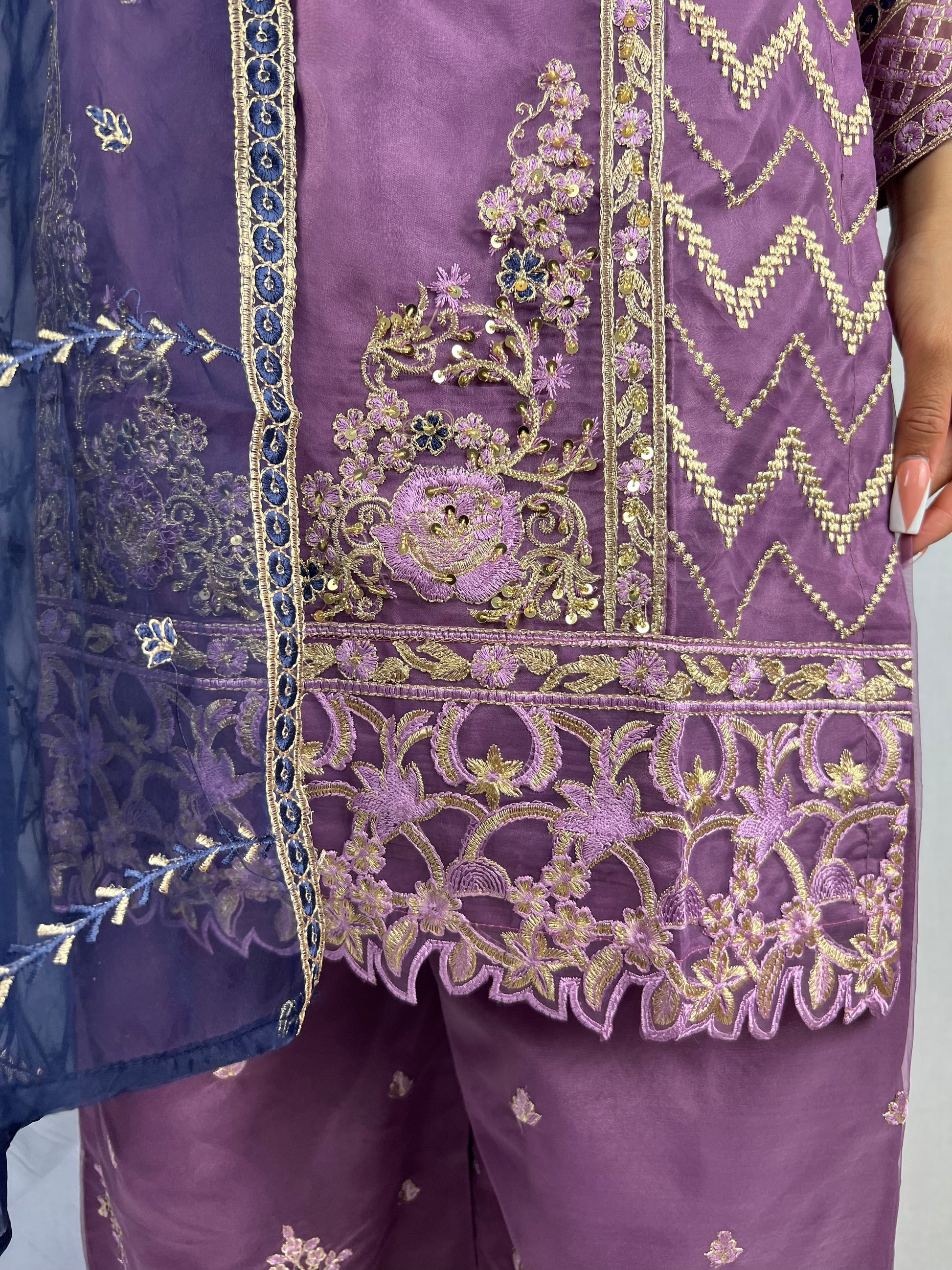 Details - Zari Embroidery & wide trousers