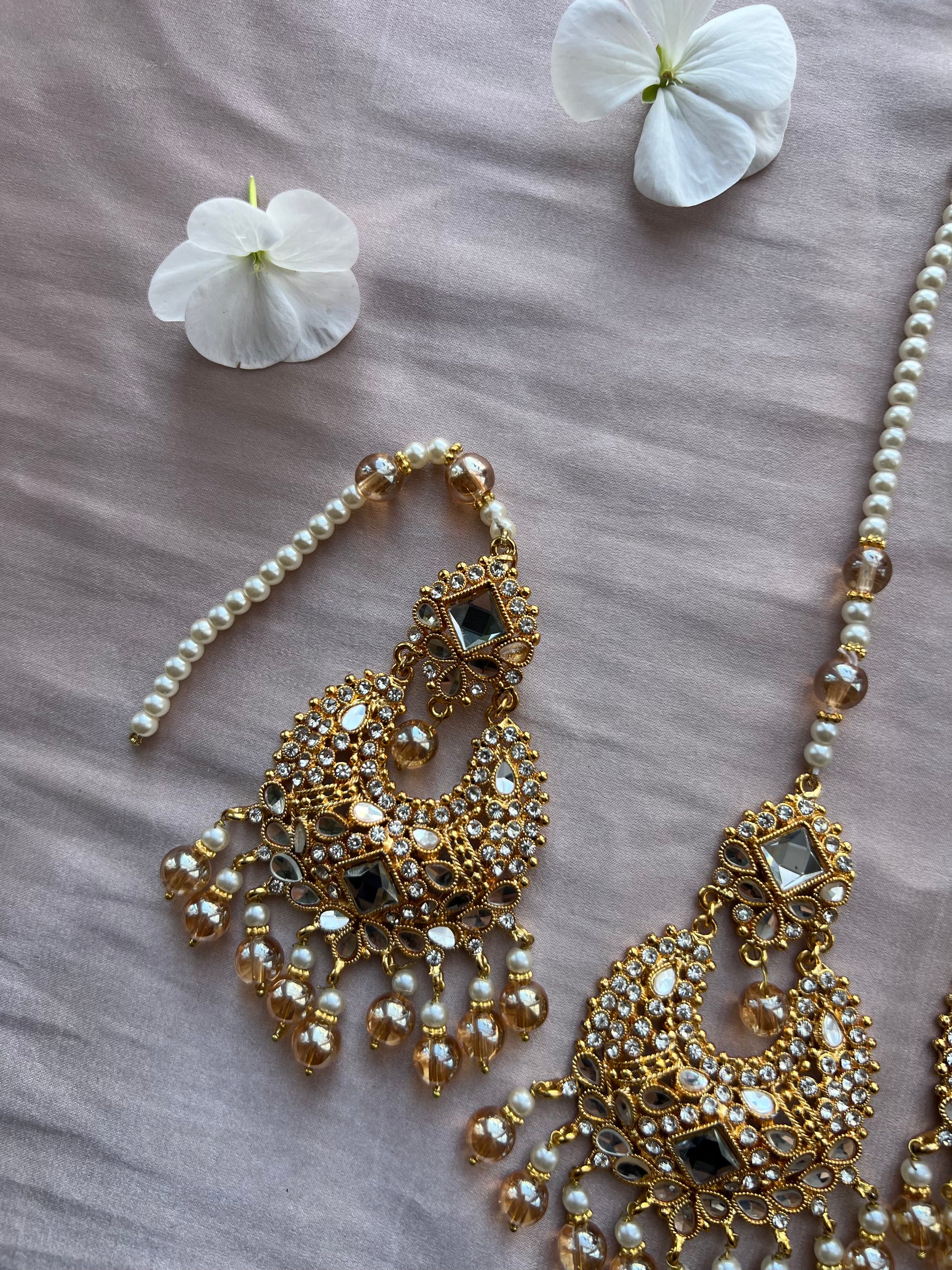 Wear this stunning set with traditional desi attire such as our Sharara's or Anarkali dresses for a classic & elegant look!